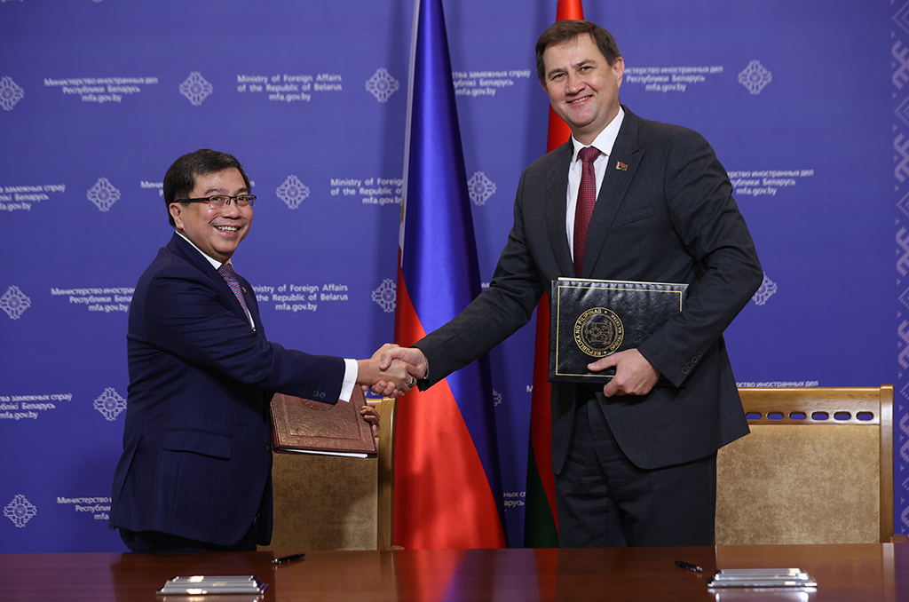 15 лістапада 2024 г. у Міністэрстве замежных спраў Рэспублікі Беларусь адбылася цырымонія падпісання Пагаднення паміж Урадам Рэспублікі Беларусь і Урадам Рэспублікі Філіпіны аб адмене візавых патрабаванняў для ўладальнікаў дыпламатычных і службовых пашпартоў.